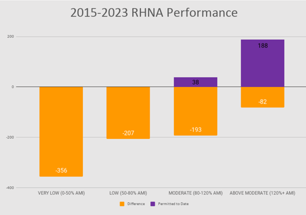 Similar to some Bay Area cities, Cupertino is actually way above their RHNA goals for apporving market-rate housing units but are way under for their below market rate housing units.