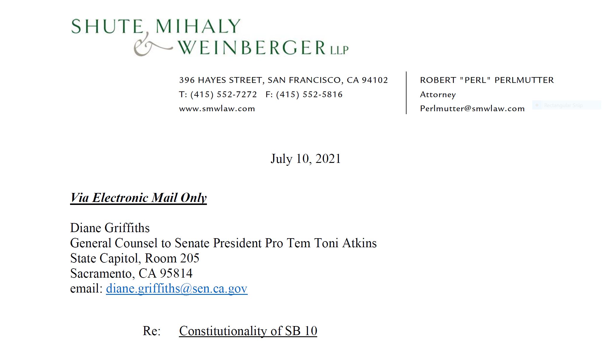 SB 10 is Unconstitutional according to attorney Robert Perlmutter. Download his letter